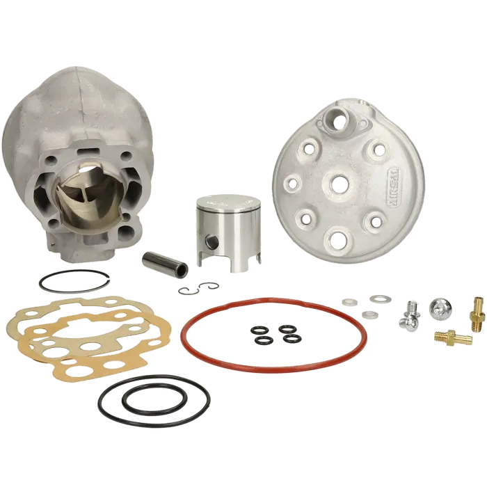 • Cilinderinhoud 70 cc • Maat 48 mm • Pistonpen 12 mm • Watergekoeld (L.c) • Materiaal: aluminium Deze Airsal 70 cc Minarelli Am6 cilinder wordt compleet geleverd met een zuiger, cilinderkop en een pakkingset. Het motorvermogen aanzienlijk toe gaat nemen. Houdt er rekening mee dat de Minarelli Am6 motor hierop afgesteld moet worden met name de carburateur en de uitlaat. Bij een goed afgestelde motor is 12 pk haalbaar!Waar komt Airsal vandaan?
