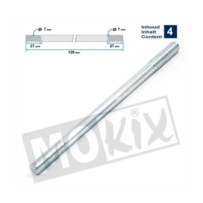 Cilinder tapeind Vespa/Tomos/Peugeot m7x120 (4 stuks)
