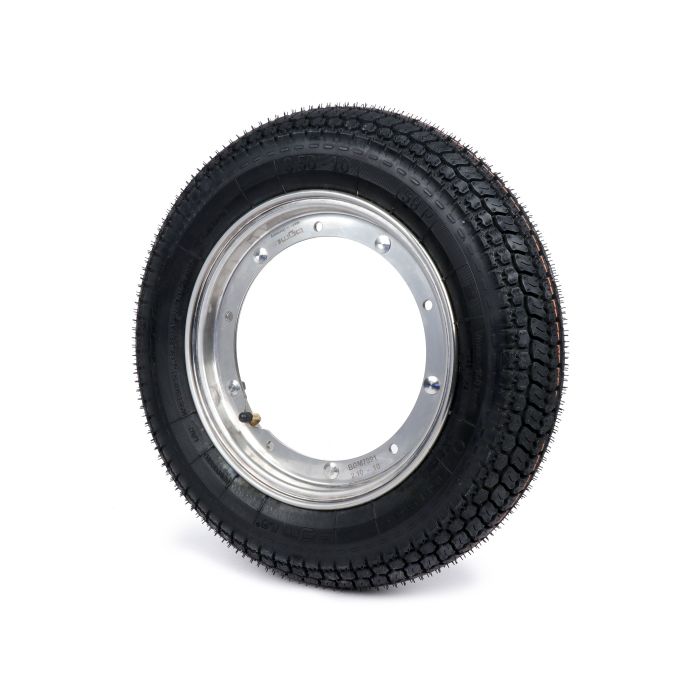 BGM Pro Classic banden (3.50-10) volledig gemonteerd op RVS velg BGM PRO (2.10-10)