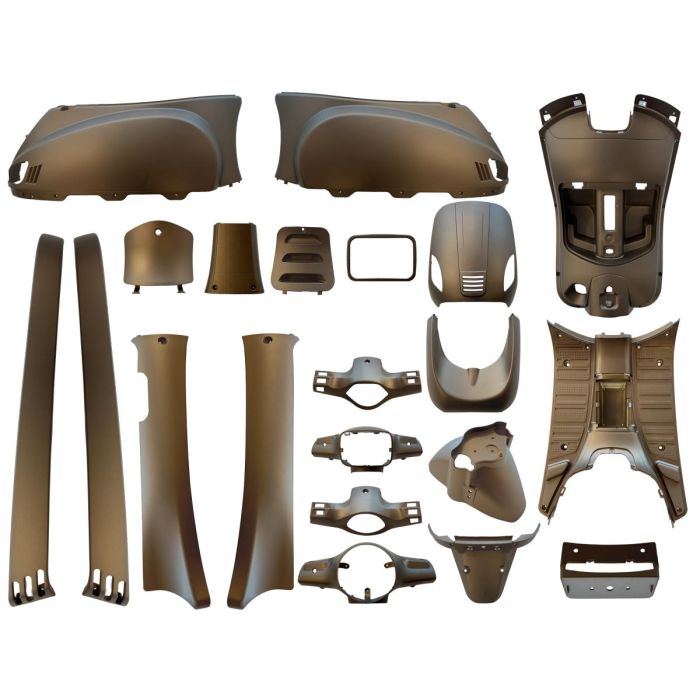 Toe aan iets anders dan standaard zwart? Met deze mat bronzen kappenset geef je je scooter direct een robuuste en volwassen uitstraling. Geen glans, maar een strakke matte finish die tegen een stootje kan.