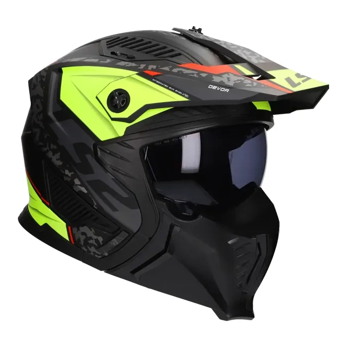 Jethelm LS2 Drifter Devor OF606 matzwart / fluor geel