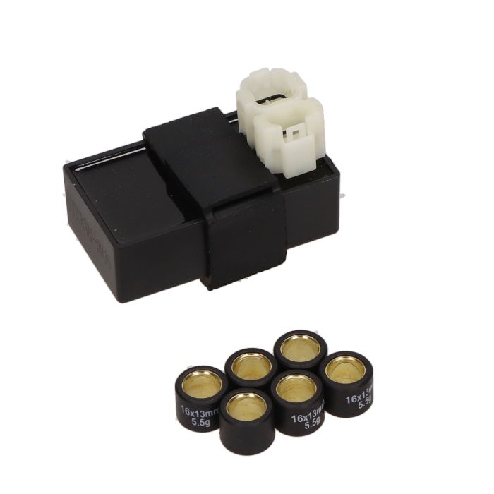 - Geschikt voor de Chinese scooter met bouwjaar voor 2018, 10 inch wielen en géén losse stekker er aan - CDI 45km/u - Rollenset met het gewicht voor een bromscooterMontage