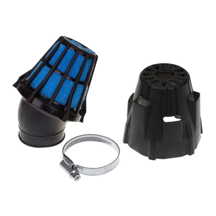 Powerfilter/luchtfilter open sport 46mm zwart/blauw aansluiting carburateur/hoek 30 graden Polini 203.0097