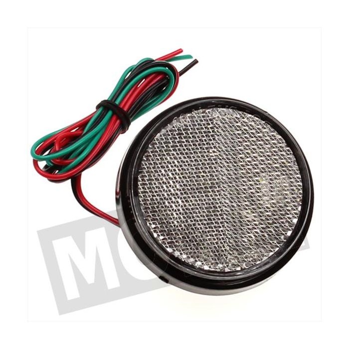 Deze blanke reflector heeft een diameter van 58mm en is voorzien van witte LED lampen binnen in.