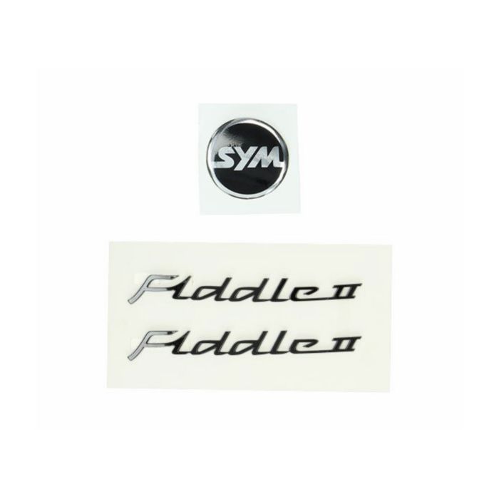 Stickerset/embleemset SYM Fiddle 2 3D dik hoogglans zwart 3-delig
