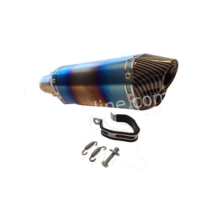 - Iridium carbon look demper - Sportief geluid - Compleet geleverd inclusief RVS bocht met toebehoren. Deze uitlaat is niet geschikt voor de openbare wegMontage uitlaat China GY6 4-takt E4 / E5 Iridium / Carbon look