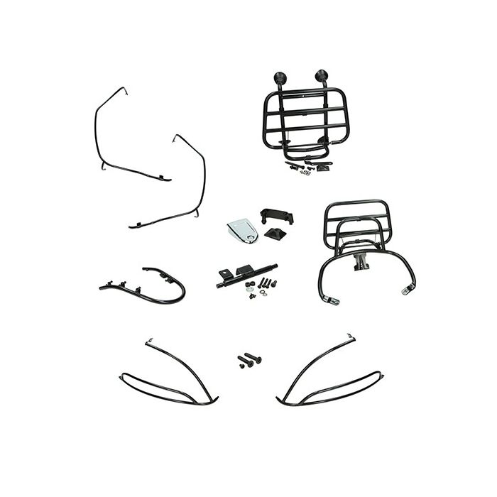 Valbeugelset/sierbeugelset voor/achterzijde/voorspatbordrand/Voor-achterdragerset Vespa Primavera/Sprint 50-125-150cc 2/4-takt matzwart compleet