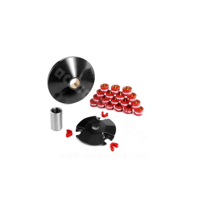 Deze variateur van het merk Carenzi is geschikt voor alle 2 takt minarelli horizontaal en verticaal blokken. Dit is een variateur van top kwaliteit en erg mooi afgewerkt. Zo is dit een variateur als vervanger voor dagelijks gebruik. Maar ook heel goed om jou scooter sneller te laten optrekken. De variateur is in het zwart uitgebracht met rode accenten. Verder worden er meerdere onderedelen meegeleverd bij de variateur van Carenzi: