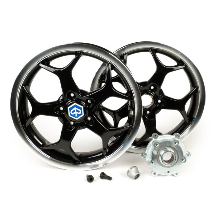 Velgenset inclusief ombouwset Piaggio 3.00-13 inch (5 spaken) type Piaggio MP3 Sport geschikt voor Vespa GT,GTL,GTS 125-300,GTV zwart
