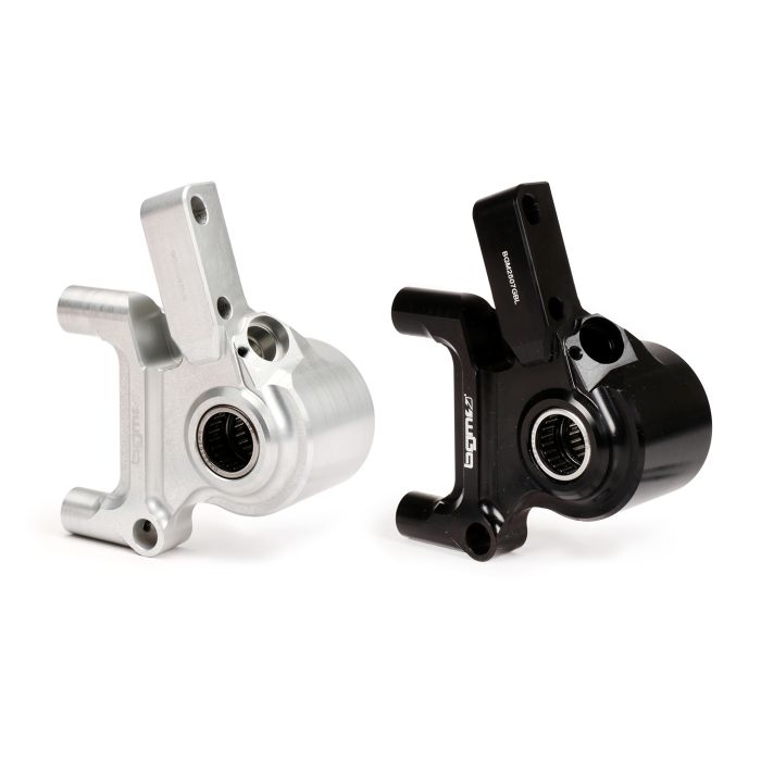 De BGM PRO remklauwadapter is gemaakt van hoogwaardig aluminium in een gespecialiseerde CNC-machine, gefreesd en uiteindelijk hard geanodiseerd in Italië. Dit betekent dat het zelfs de zwaarste omgevingsinvloeden kan weerstaan en duurzaam solide en visueel aantrekkelijk blijft. De houder wordt montageklaar geleverd, voorzien van reeds gemonteerde hoogwaardige naaldlagers van Europese leveranciers (SKF/INA).